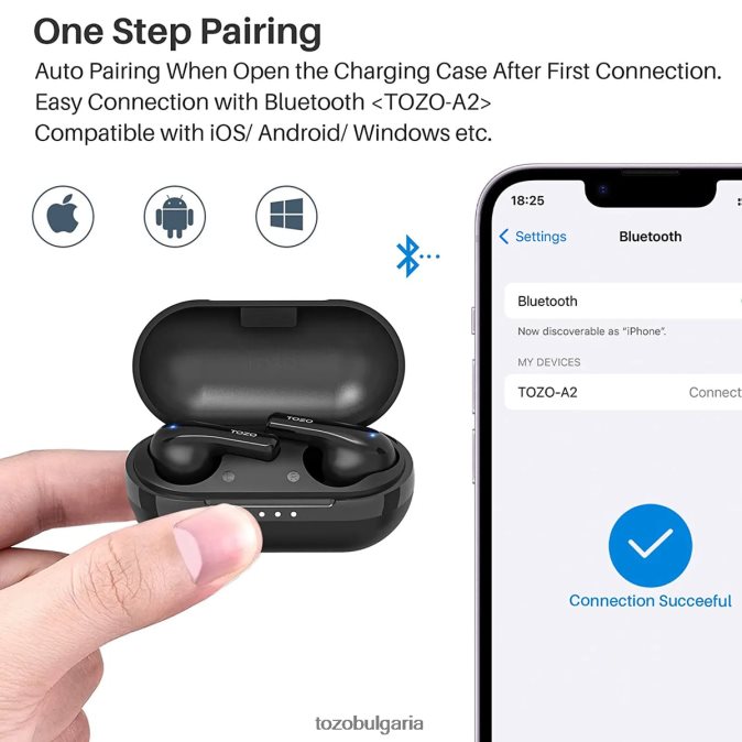 повърхността и ъгълът на частите за поставяне в ушите на слушалките tozo a2 са многократно полирани и усъвършенствани, за да се постигне баланс между красота и прилягане, което ги прави удобни за носене. междувременно една слушалка тежи само 3,7 g, което я прави лека като перце в ухото ви.